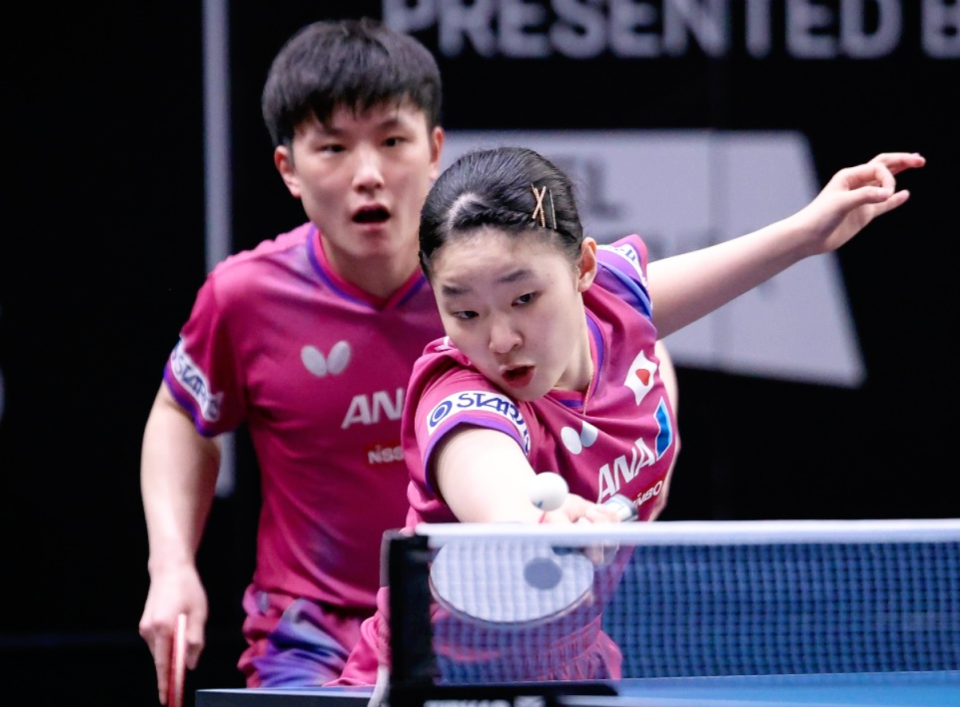 黄友政/陈熠这边上来就在第一局不断领先,10-4拿到多达6个局点后错失3分,但最终还是以11-7成功拔得头筹。第二局户上隼辅/早田希娜将比赛打简单化、与对手比拼单板质量,黄友政/陈熠一度7-10落后挽救3个局点追平,但10-11落后被对方擦网直接得分,由此而以10-12遗憾落败。